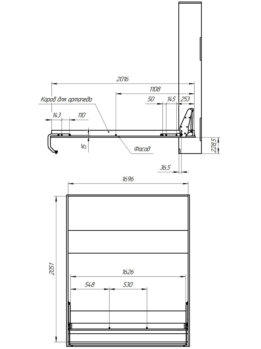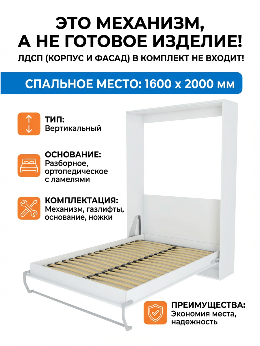 Механизм вертикальной царговой откидной шкаф кровати РФ601 1600*2000