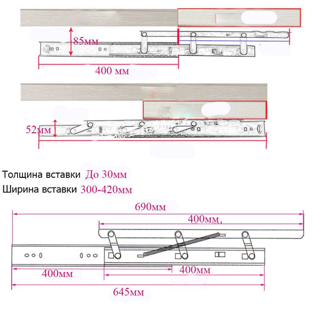 Механизм торцевого подъема столешницы с демпфером К121 база 400