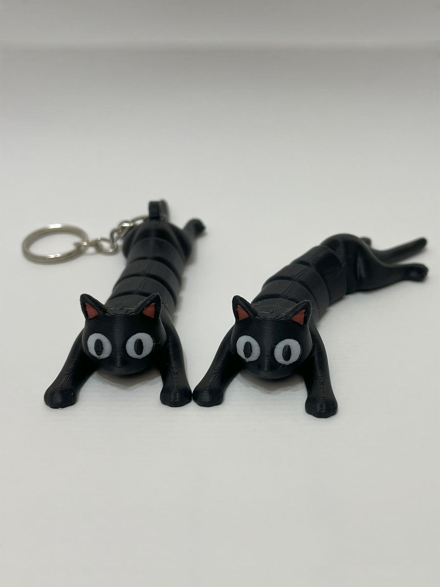 Брелок «Черный кот» — это маленькое произведение инженерного искусства в вашем кармане. Главная особенность этой модели — шарнирная конструкция, благодаря которой котик может не только двигать лапками, но и вилять хвостом! Это идеальный фиджет-аксессуар: его приятно перебирать в руках, он помогает сосредоточиться или просто поднять настроение в течение дня.