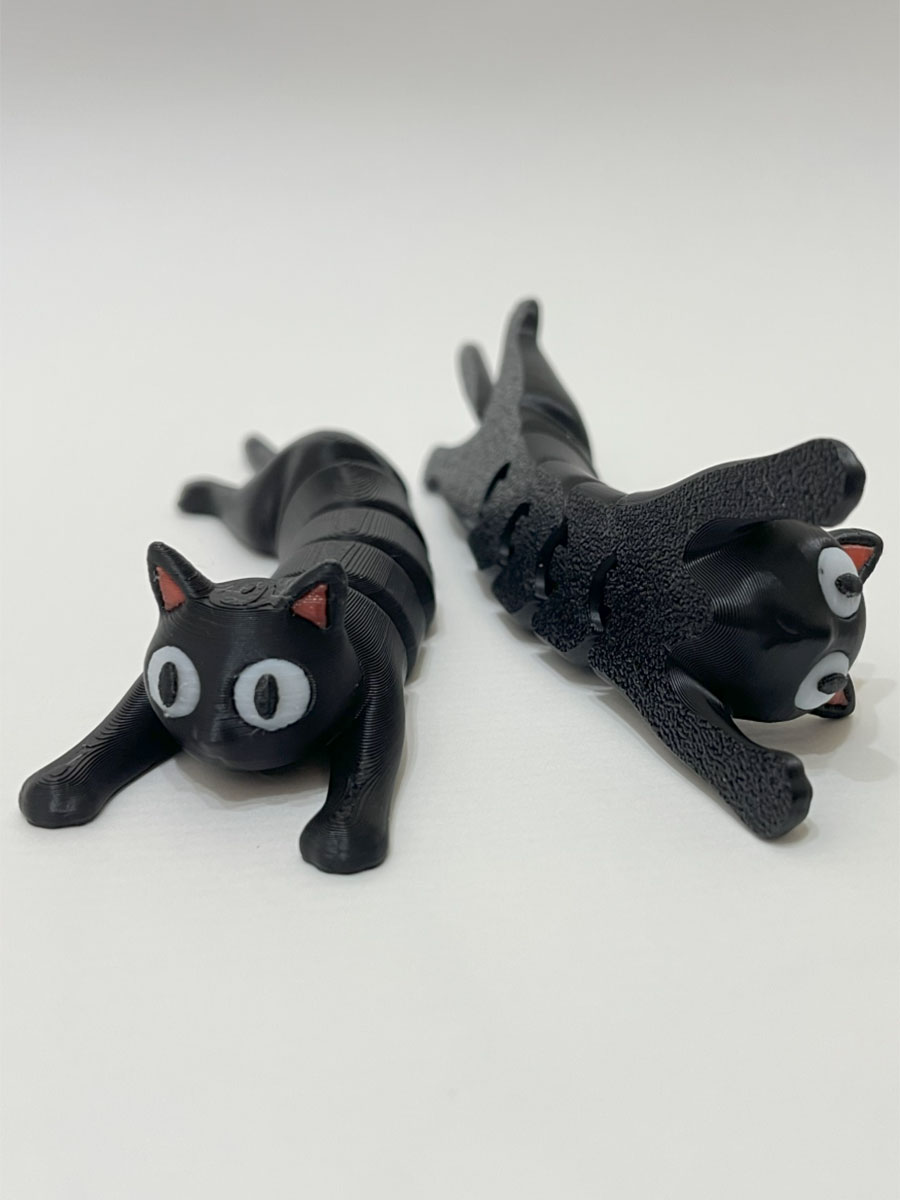 Базовый цвет модели — черный, что придает котику загадочный и стильный вид.