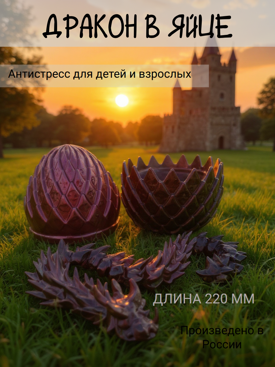 Подвижный дракон в яйце антистресс 3D black silk