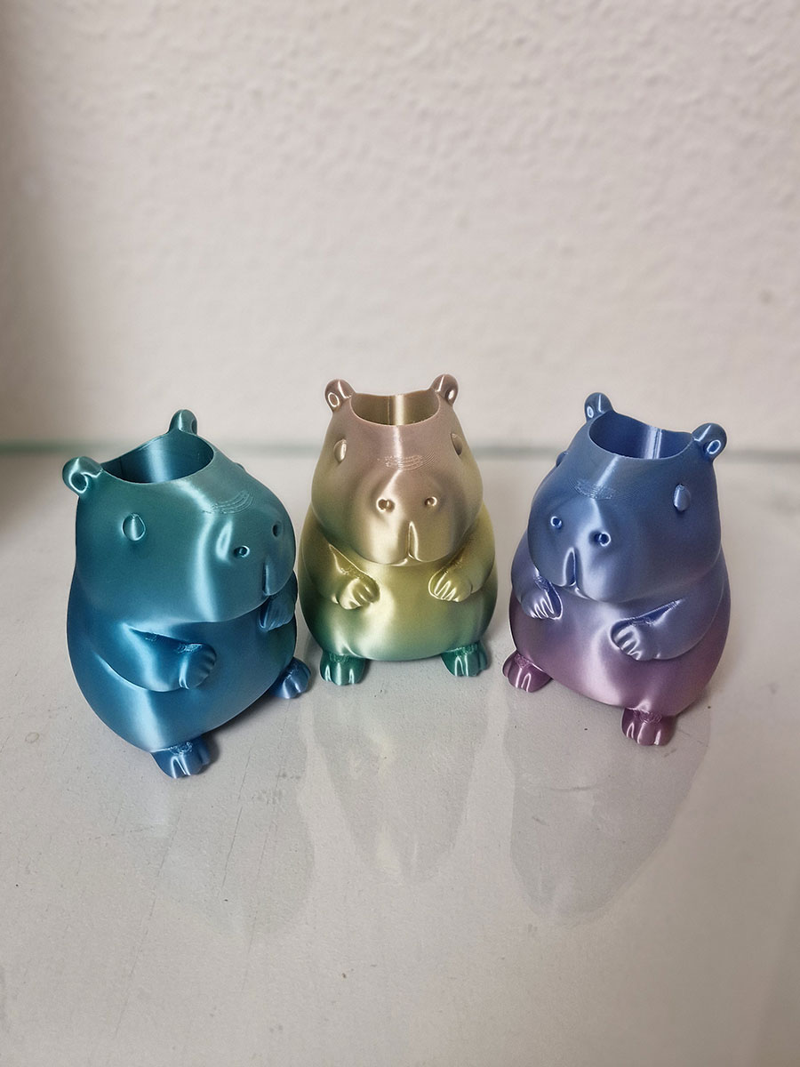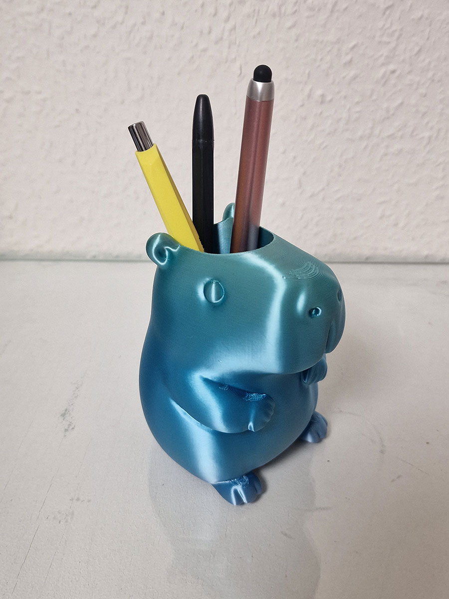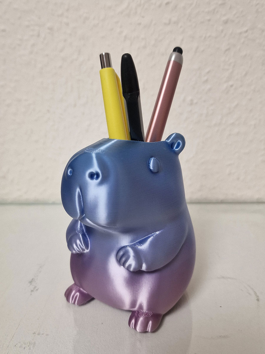 Подставка для ручек (карандашница) «Капибара» — стильный и практичный аксессуар для дома и офиса. Модель выполнена методом 3D‑печати из экологичного многоцветного PLA Silk — материал с шелковистым блеском, приятной текстурой и высокой прочностью для повседневного использования.