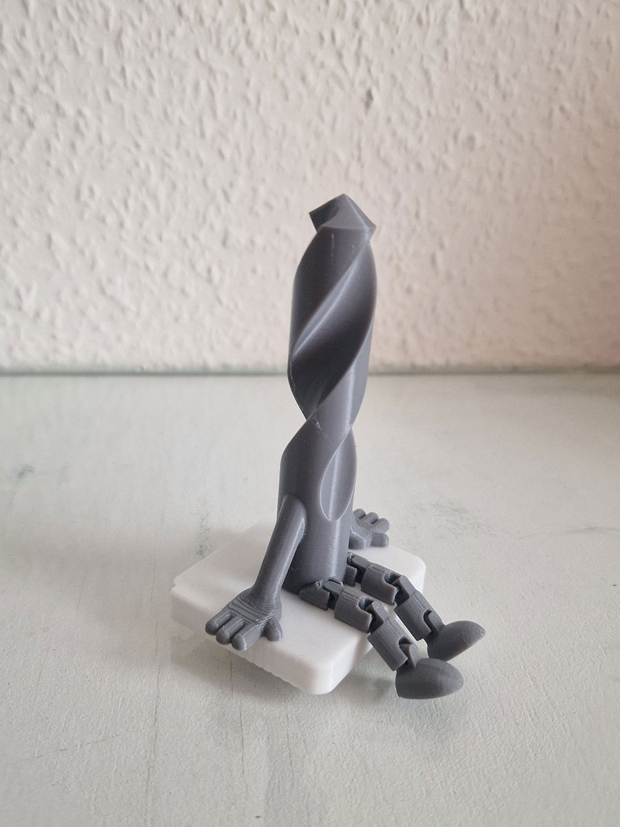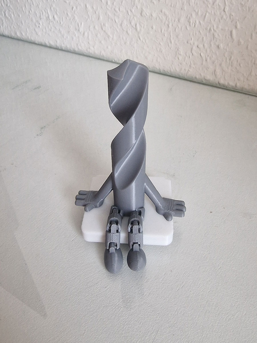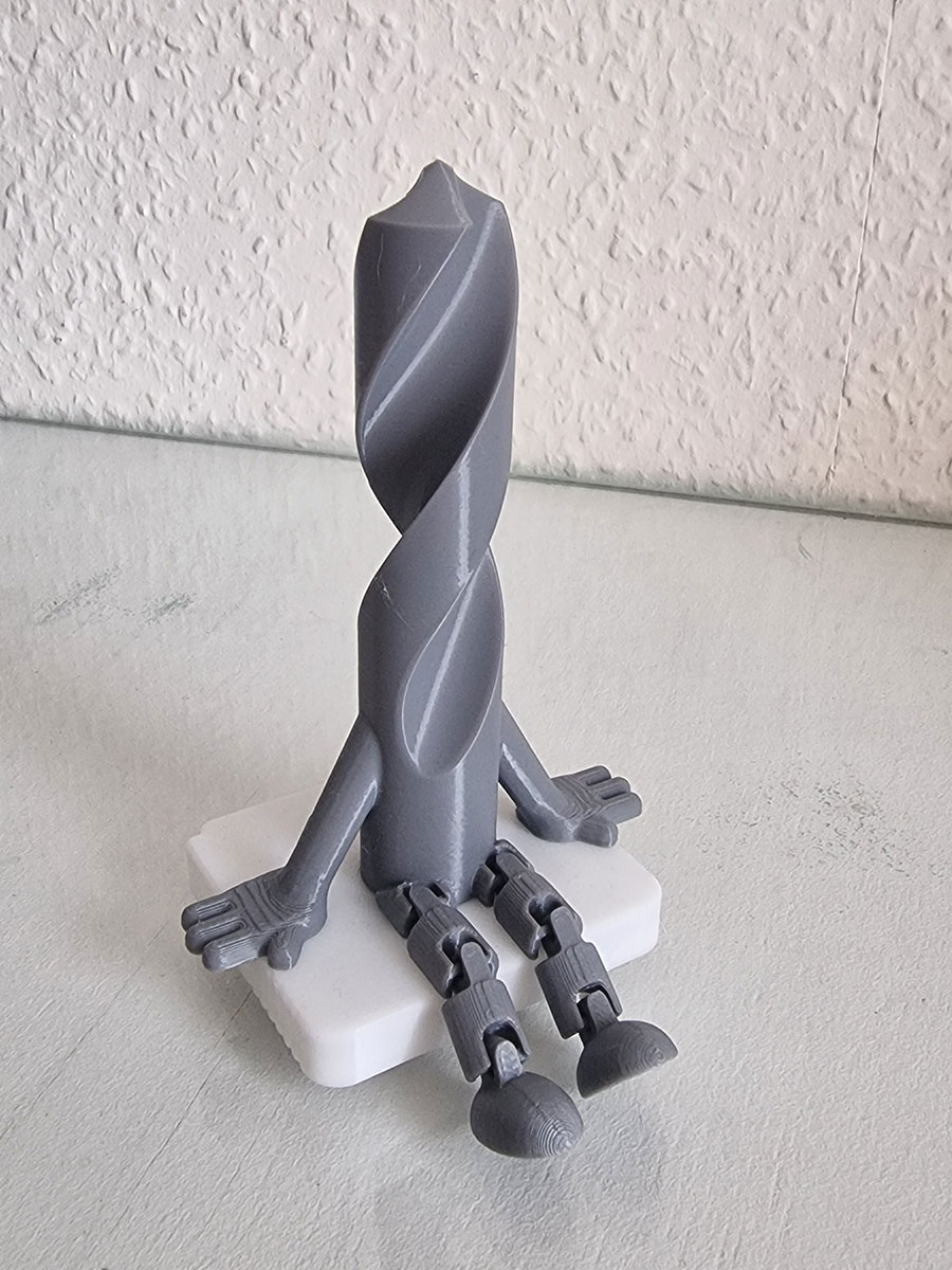 Сверло с подвижными ножками — это ироничный взгляд на привычный инструмент. Кто сказал, что оснастка должна только сверлить? Наш персонаж предпочитает отдыхать на полке, свесив ноги, и поднимать настроение окружающим. Фигурка детально повторяет форму спирального сверла, но обладает «человеческим» характером благодаря полностью подвижным шарнирным ножкам.